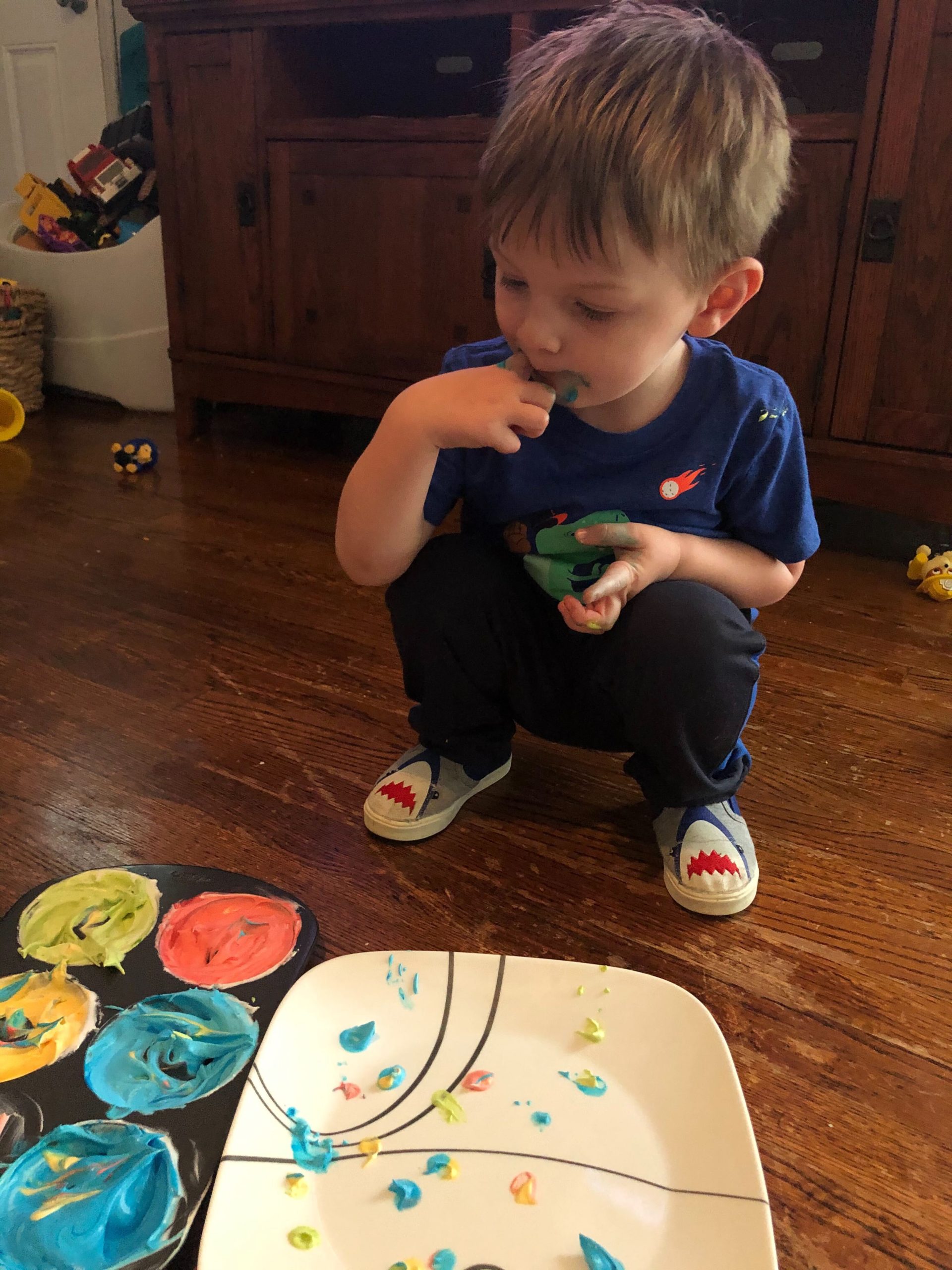 Sturgill Ortho team member Jess used cool whip and food coloring to create toddler-safe finger paints. It’s suitably messy and no harm done if little fingers go in little mouths.
